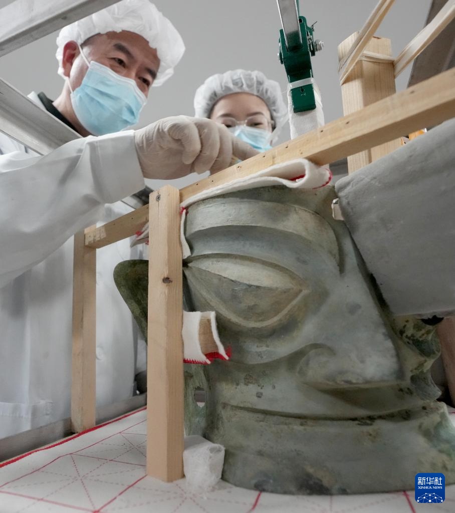 在国家文物局的支持和指导下,众多文物保护修复工作者投身三星堆文物的保护修复工作,修复了大量文物。为了让公众更直观地了解文物修复工作,三星堆博物馆新馆特别设置了文物保护和修复中心。在这里,普通观众可以隔着玻璃观看修复师的日常工作。打小在三星堆遗址旁长大,从事文物修复工作近40年的“大国工匠”、三星堆博物馆陈列保管部副部长郭汉中依旧带领徒弟忙碌在文物修复工作一线。郭汉中深度参与了三星堆目前已发现的全部8个祭祀坑的发掘工作,累计修复文物6000余件。在众多文物修复工作者的努力下,这些出土时叠压变形、受到侵蚀的国宝在修复后能够以良好的状态示人,不但让观众大饱眼福,更为科研人员提供了翔实可靠的考古研究素材。