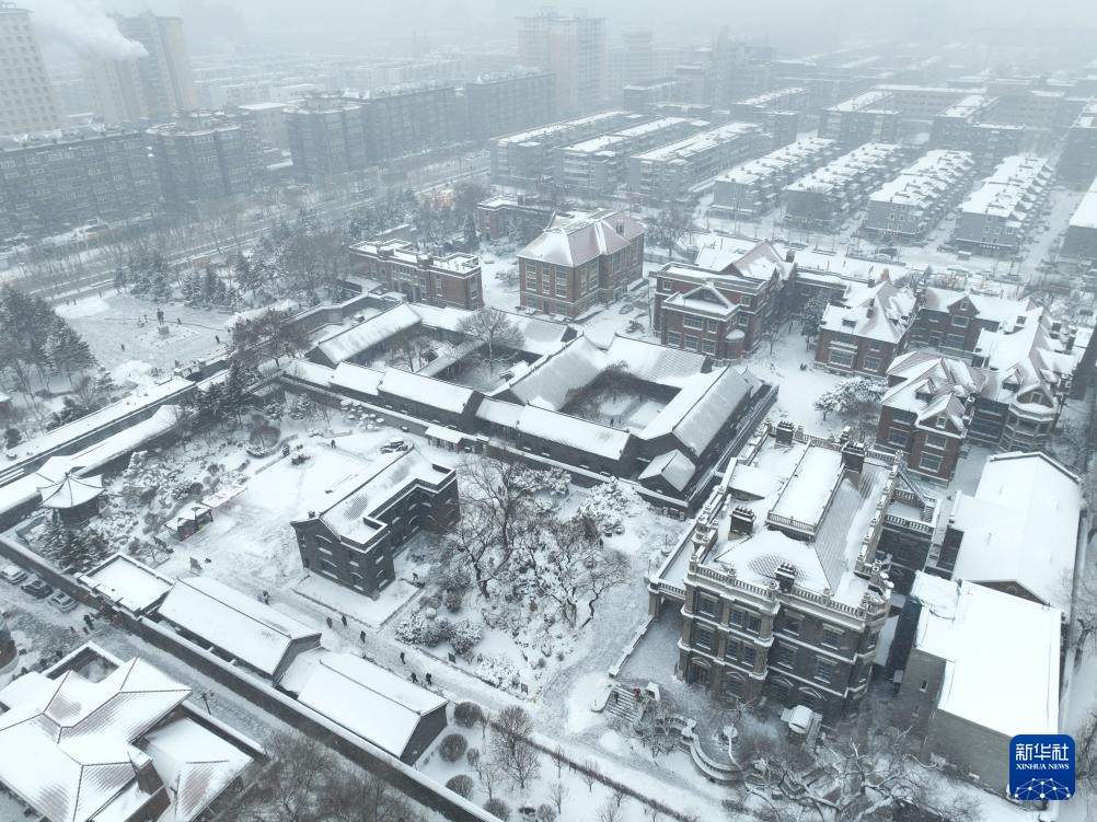 1月27日拍摄的沈阳张学良旧居陈列馆雪中景色(无人机照片)。