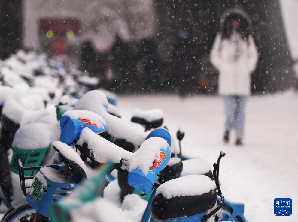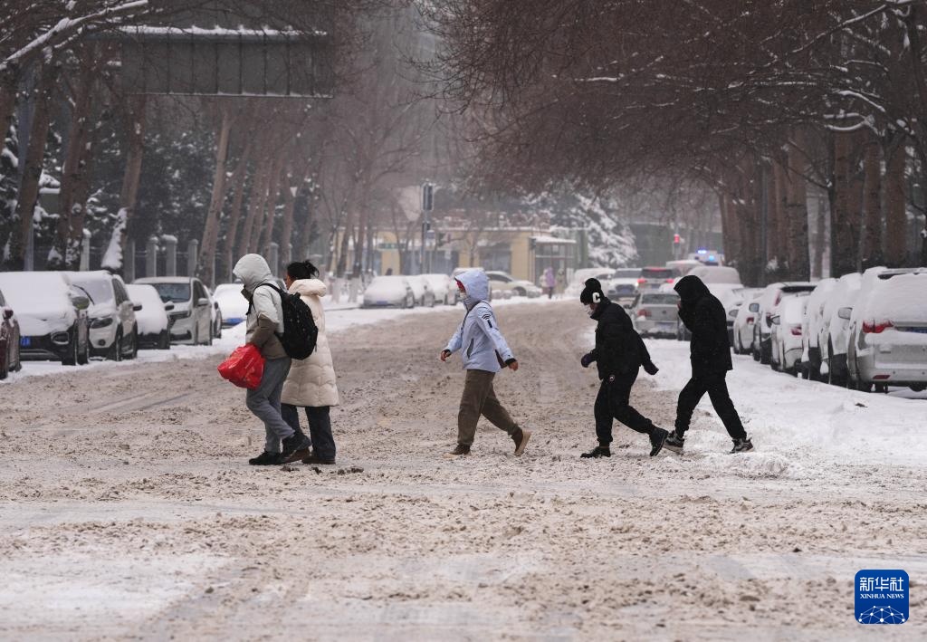 1月27日,市民在沈阳街头冒雪出行。