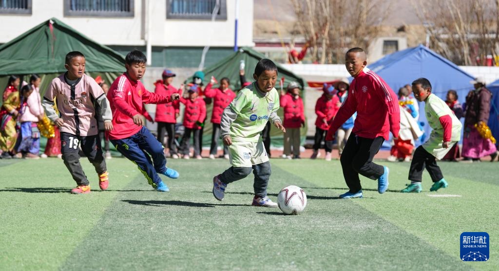 西藏定日6.8级地震发生20天后,灾区震后安置工作正有条不紊地进行着。在春节即将到来之际,中国科学院心理研究所联合其他相关机构为长所乡嘎旦村和曲洛乡措昂村的孩子们精心组织了一场地震灾区的足球比赛。“足球是一项团体运动,能够帮助孩子们重建社会支持系统。”中国科学院心理研究所应急心理救援队队员李晓景说。