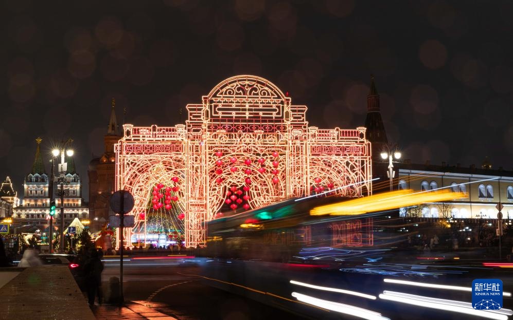 这是1月28日在俄罗斯首都莫斯科市中心拍摄的中国新年主题装饰。
