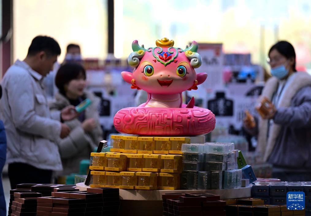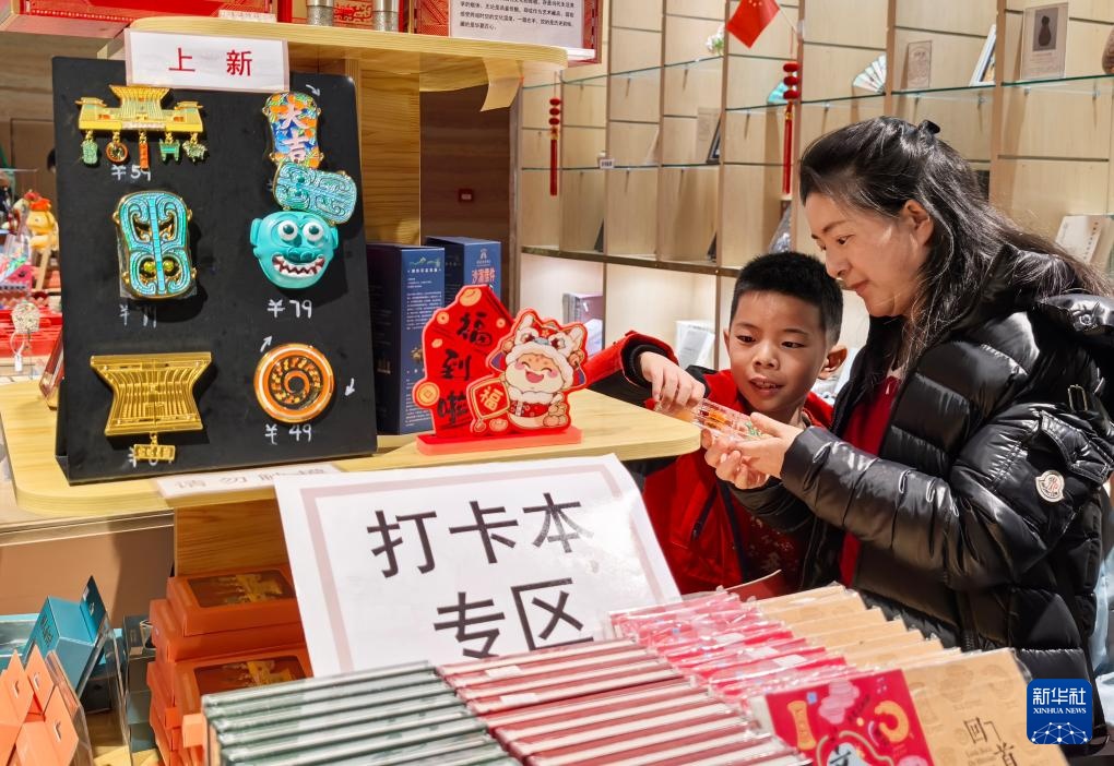1月29日,参观者在北京中国考古博物馆文创店选购文创纪念品。