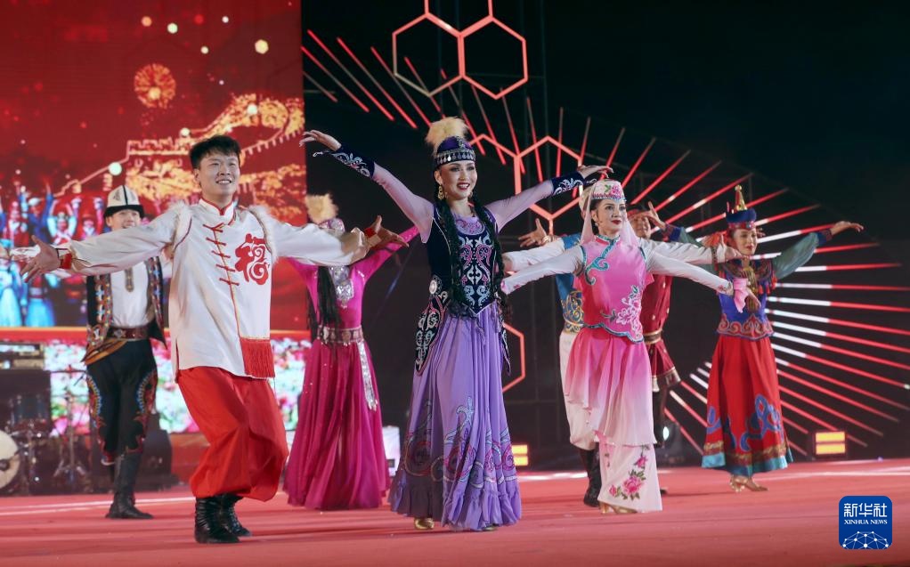 1月26日,在泰国那空沙旺湄南河畔举行的春节庆祝活动上,新疆艺术剧院木卡姆艺术团的演员表演歌舞《欢乐大地》。