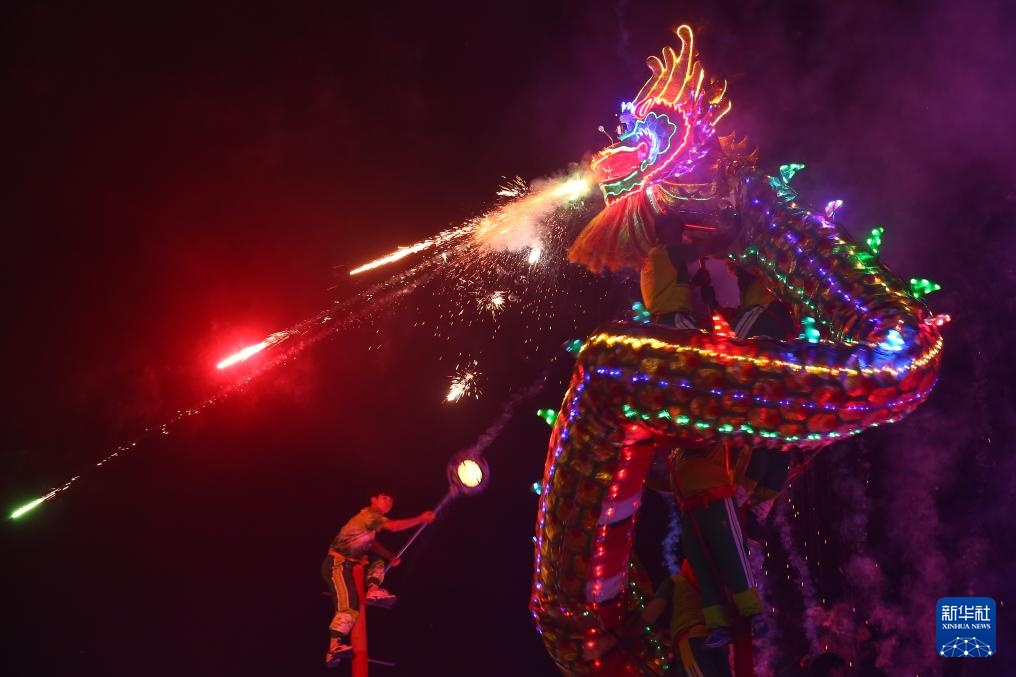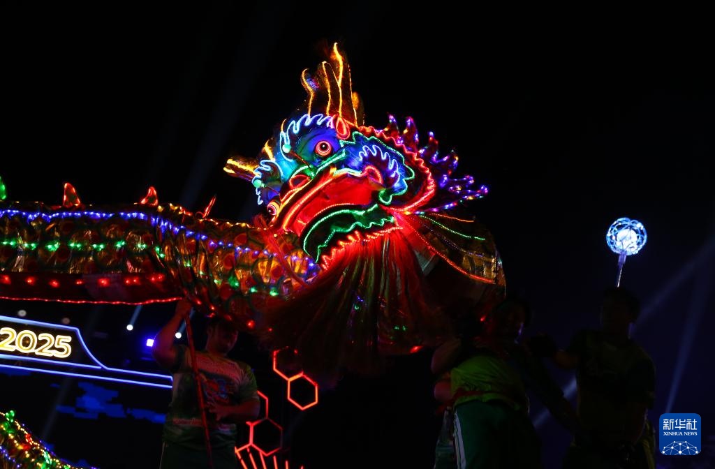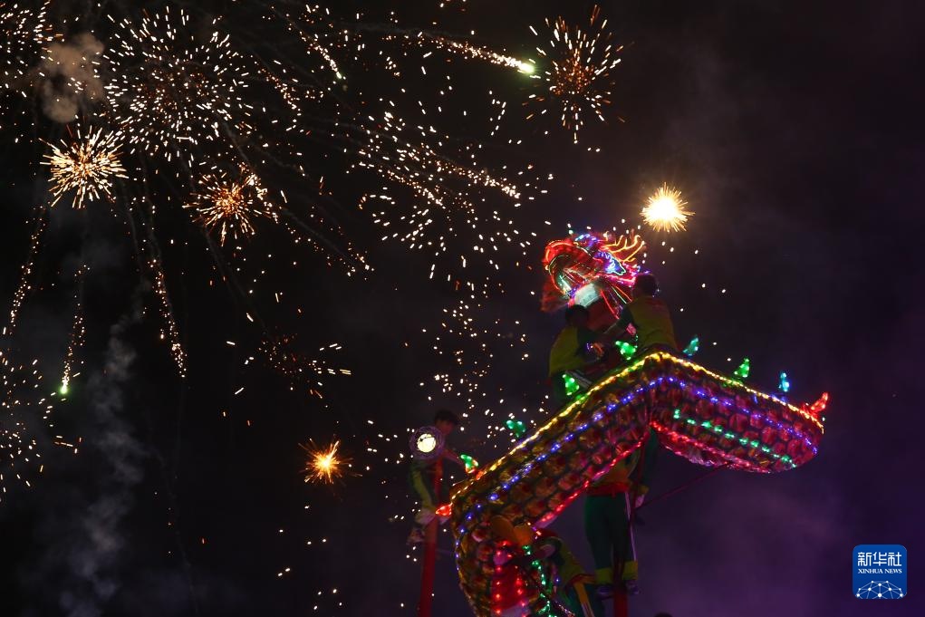 1月26日,演员在泰国那空沙旺湄南河畔举行的春节庆祝活动上表演舞龙。