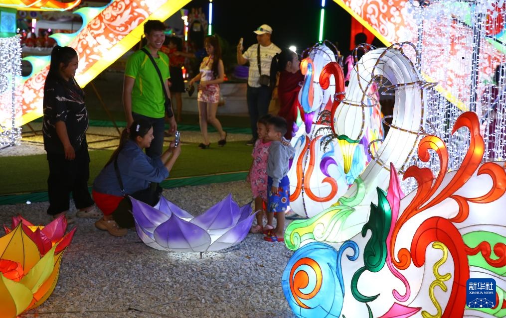 1月26日,人们在泰国那空沙旺湄南河畔举行的春节庆祝活动上留影。