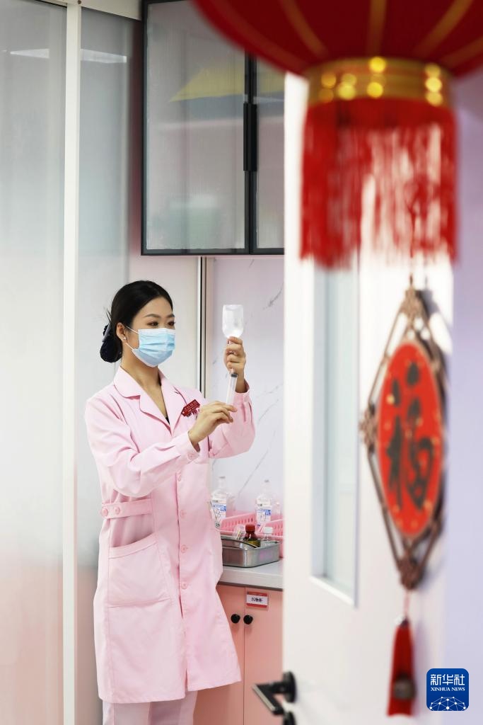 1月29日,河北省唐山市丰润区妇幼保健院产科的护士在配药。