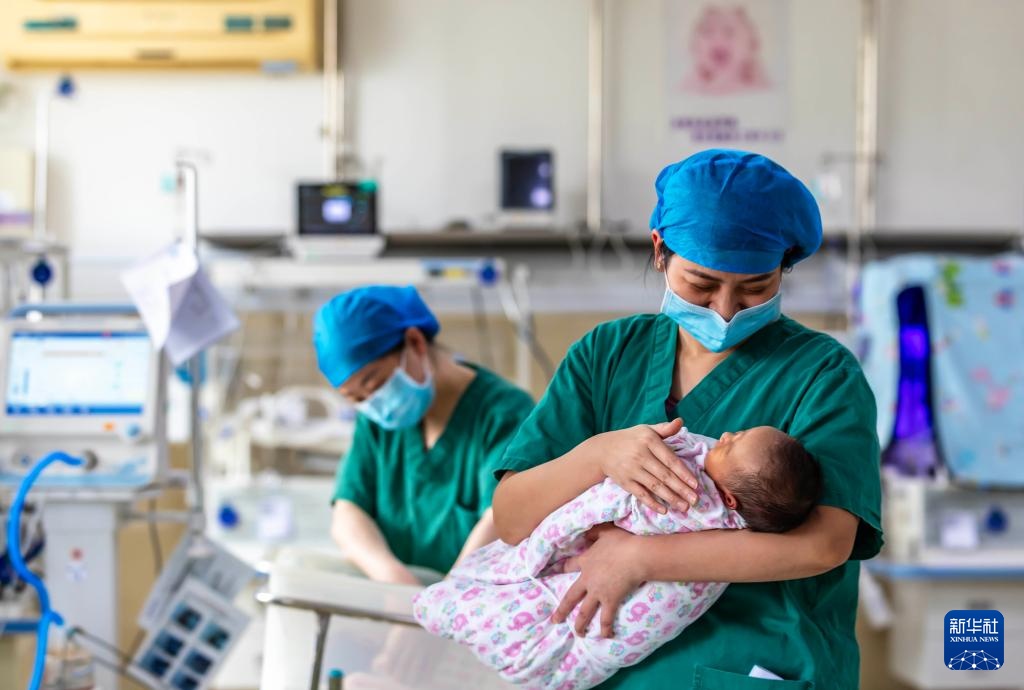 1月29日,医生在贵州省黔西市人民医院新生儿科为新生儿做日常护理。