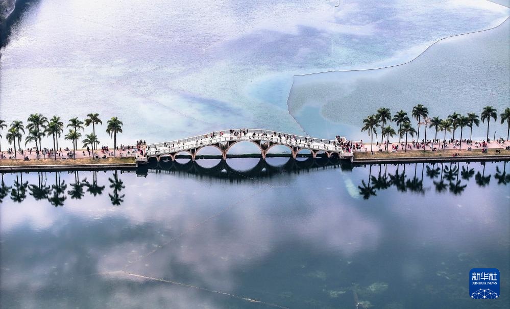 1月29日,游客在广西南宁市南湖公园游玩(无人机照片)。