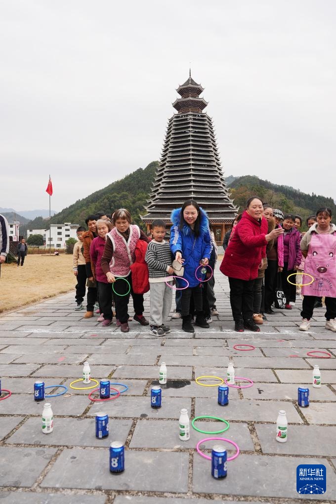 1月29日,在广西龙胜各族自治县乐江镇江口村,当地村民参加游园活动。