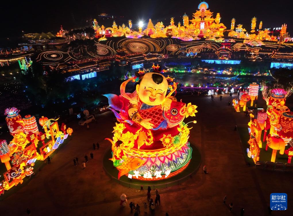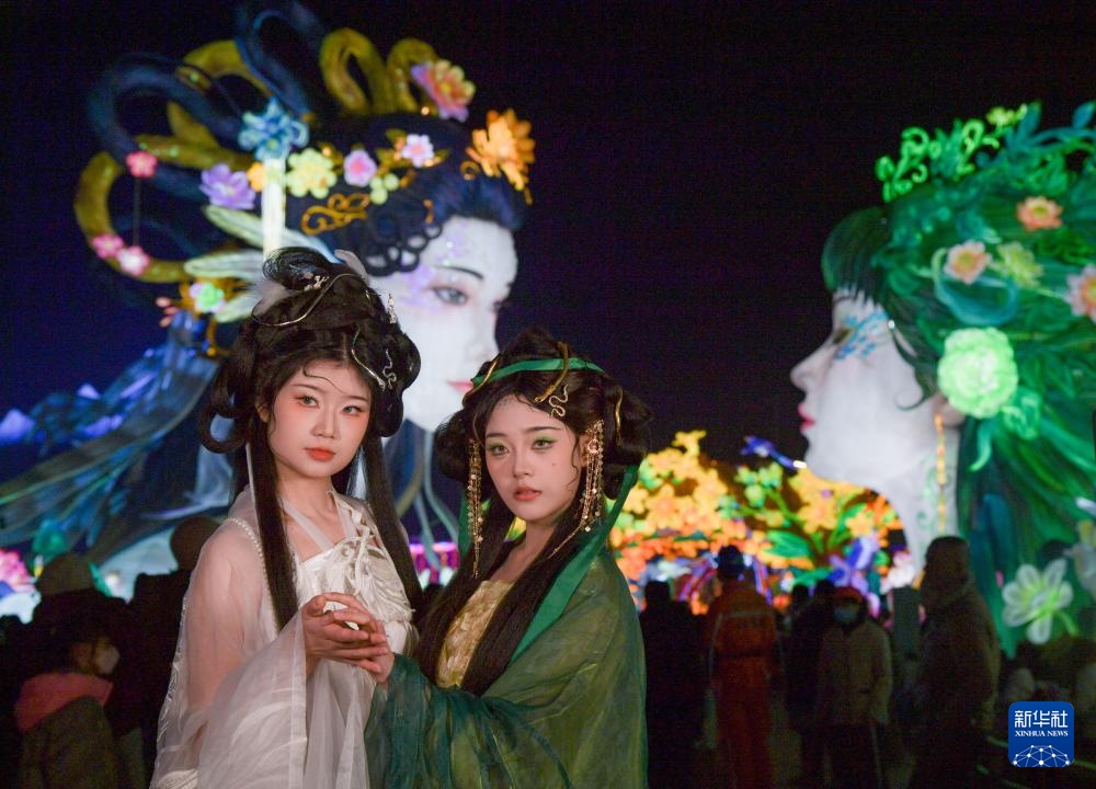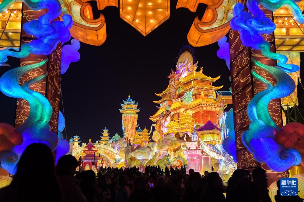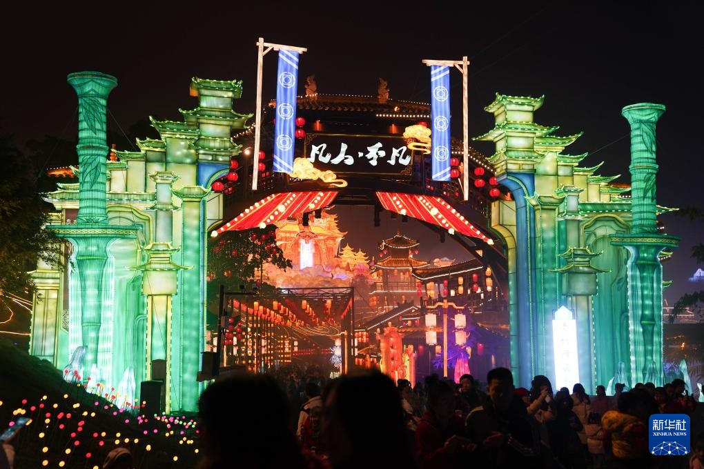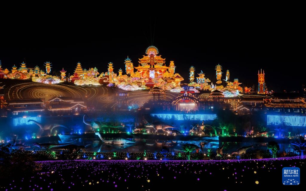 第31届自贡国际恐龙灯会上拍摄的以国创动画《凡人修仙传》为主题打造的灯市灯组(1月14日摄)。