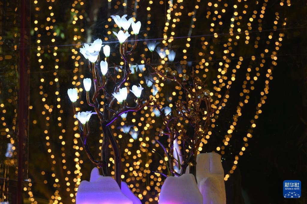第31届自贡国际恐龙灯会上展出的四川省级非物质文化遗产“玻璃吹塑技艺”代表性传承人彭正华创作的灯组《玉宇冰姿》。
