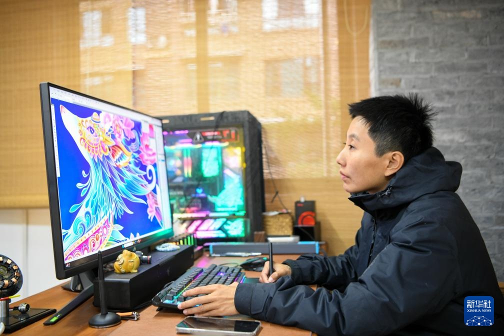 “90后”彩灯设计师邱玥在查看第31届自贡国际恐龙灯会的设计图(1月27日摄)。进入彩灯行业十余年,邱玥设计的彩灯在自贡、北京、西安、广州、深圳、法国巴黎等国内外灯会展出。在她的设计公司,员工平均年龄26岁。邱玥说,“年轻的血液不断加入进来,不断创新设计,这是我们自贡彩灯成功的秘诀之一。”