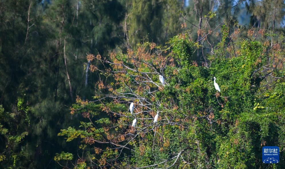 在海南省昌江黎族自治县海尾湿地,白鹭在树上休息(1月23日摄)。