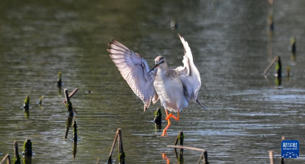 这是在海南省昌江黎族自治县海尾湿地拍摄的林鹬(1月23日摄)。
