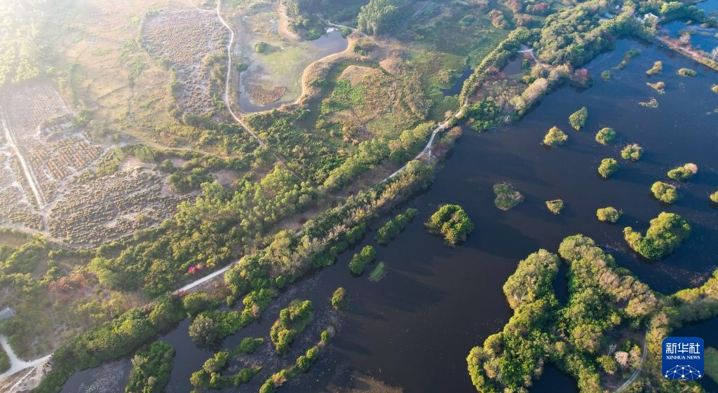 这是位于海南省昌江黎族自治县的海尾湿地景色(1月24日摄,无人机照片)。