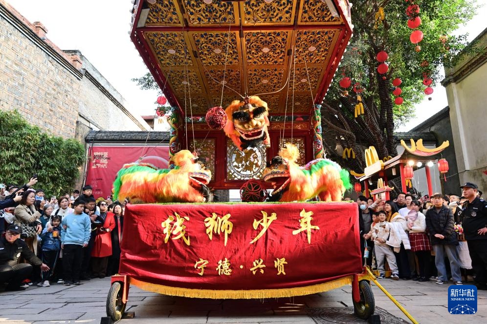 今年春节期间,来自福建省宁德市蕉城区霍童镇兴贤村的“兴贤少年线狮队”现身福州市上下杭历史文化街区,为市民及游客奉上一场别开生面的国家级非物质文化遗产代表性项目——宁德霍童线狮表演。