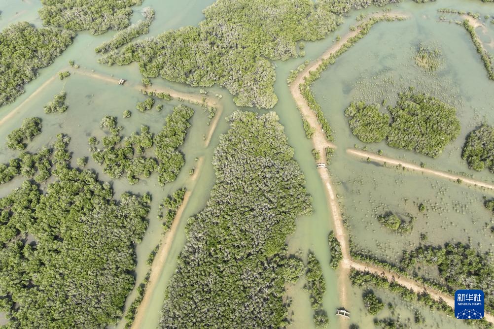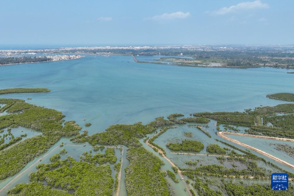 1月18日拍摄的海南儋州新盈红树林国家湿地公园(无人机照片)。