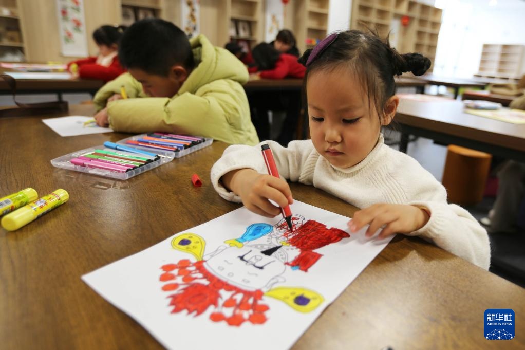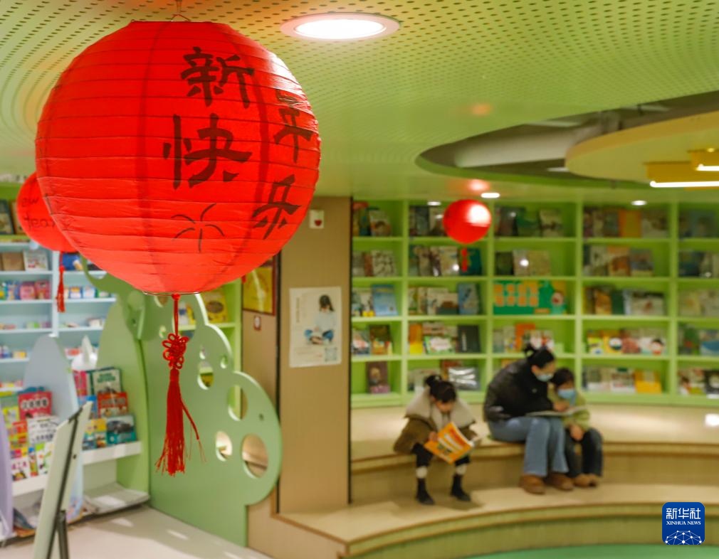 2月1日,小朋友在山东省济南市图书馆中山公园馆阅读。