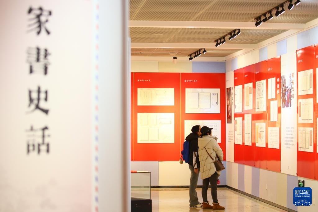 2月1日,市民在江苏省海安市图书馆观看家书展。