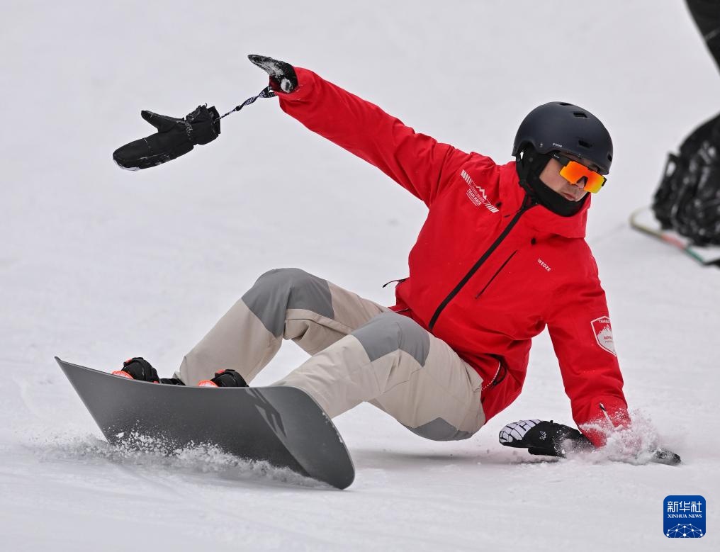 1月31日,滑雪爱好者在羌人谷滑雪场游玩。