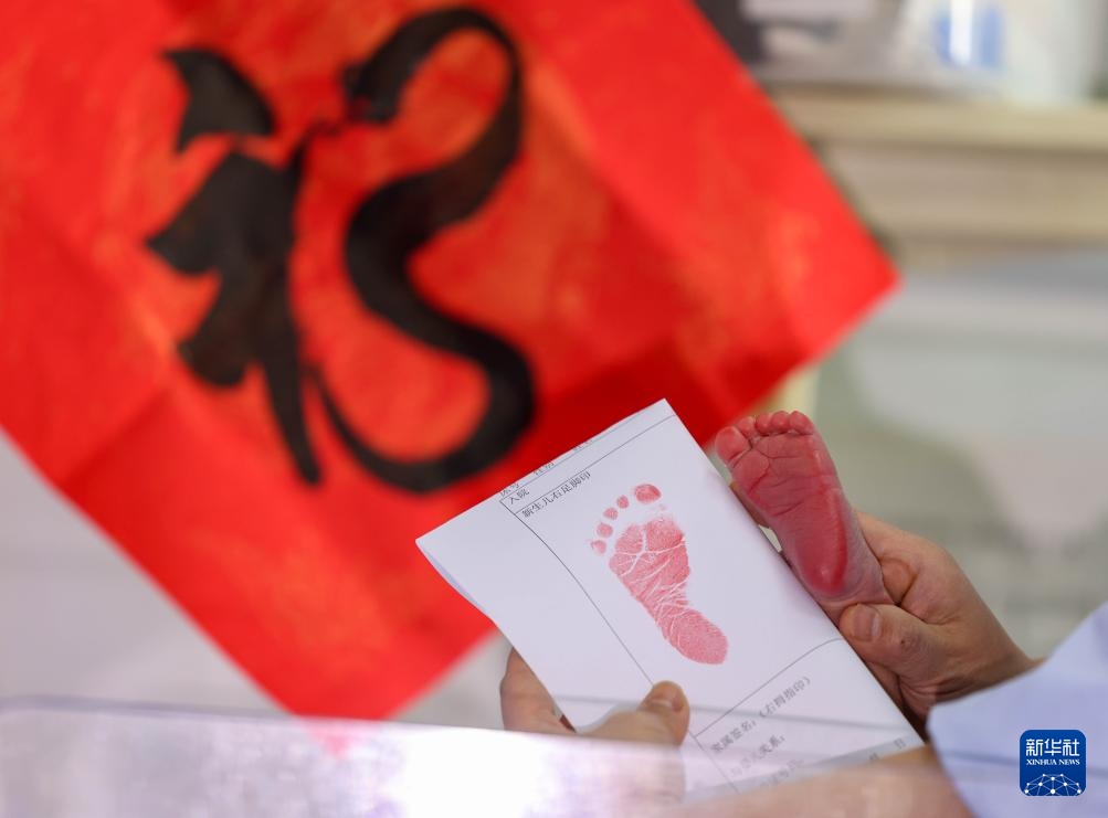 1月29日,在贵州省铜仁市玉屏侗族自治县人民医院新生儿科,医务人员为一名刚出生的“蛇宝宝”留下脚印。