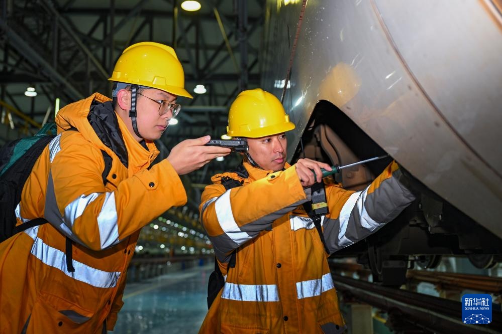 春运期间,随着列车增开数量提升,中国铁路上海局集团有限公司上海电务段的工作人员加大检修密度,保障动车组设备正常运行,守护旅客出行安全。