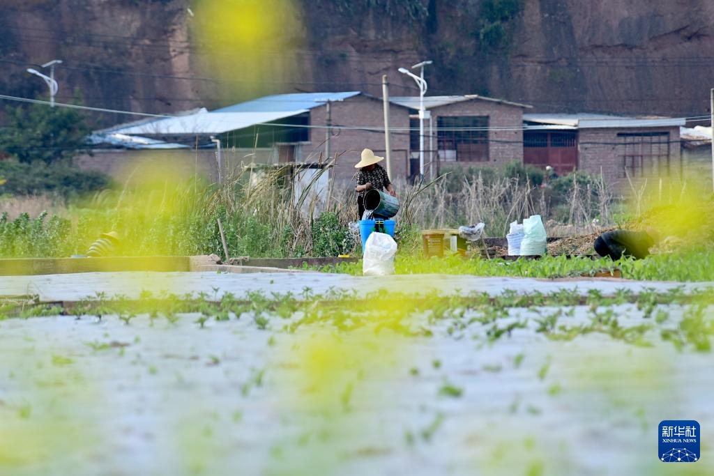 2月2日,农民在云南省大理白族自治州南涧彝族自治县南涧镇杨免庄村的蔬菜种植基地劳作。
