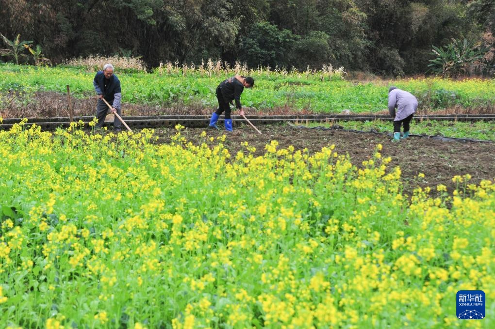 2月2日,农民在广西河池市罗城仫佬族自治县四把镇石门村田间劳作。