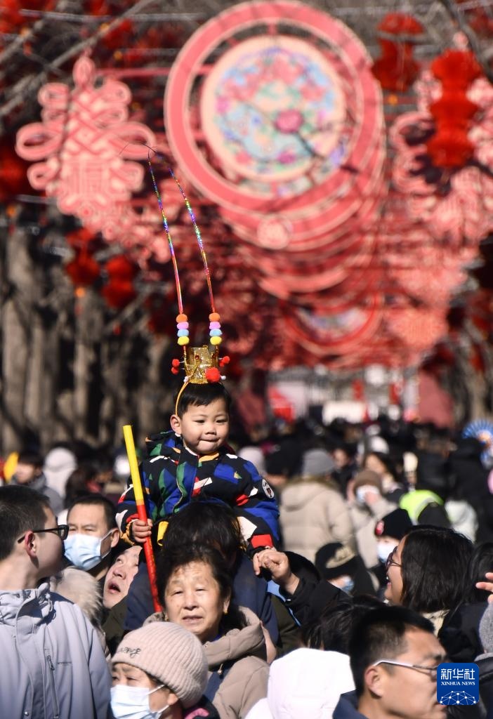 当日是立春,大批市民游客来到北京地坛公园参加在这里举办的春节文化庙会,感受春天气息。