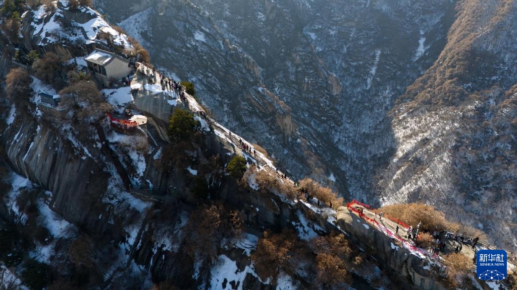春节假期,位于陕西省渭南市的西岳华山迎来游览高峰,日均接待游客达2万人次。