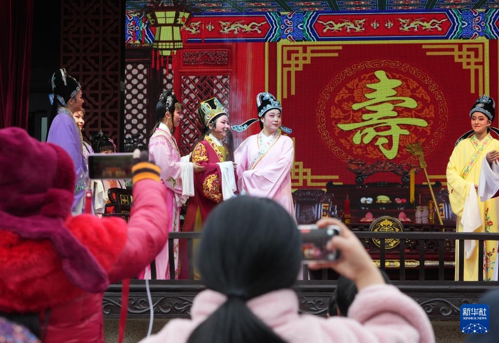 在绍兴市越城区,群众在“绍兴古城过大年”活动上欣赏越剧表演(1月29日摄)。