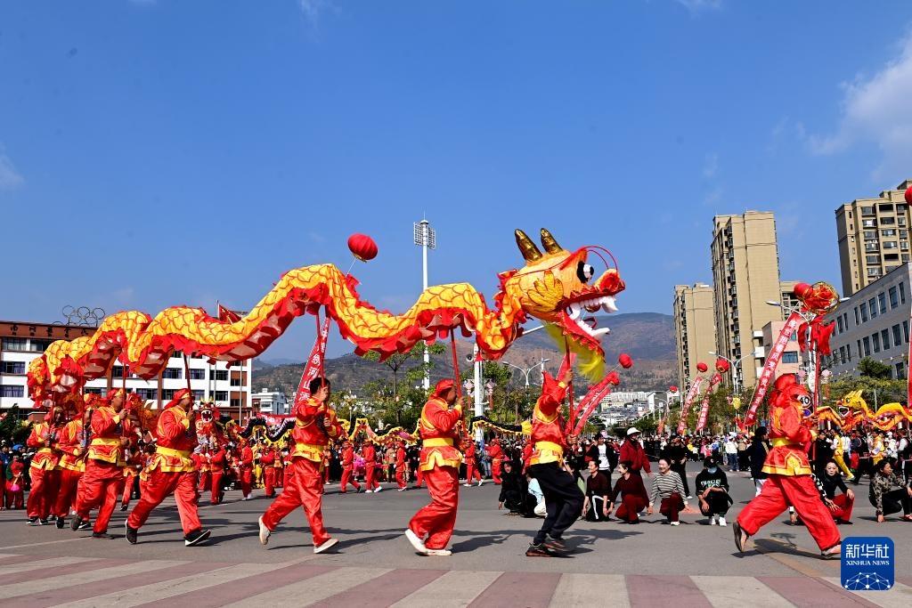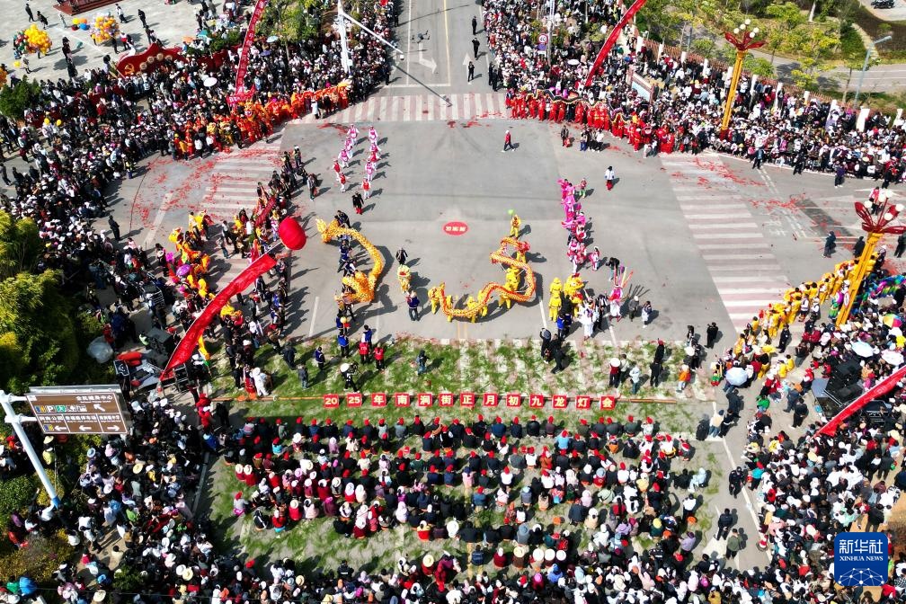 当日是农历正月初九,云南省大理白族自治州南涧彝族自治县举行龙灯会,来自全县8个乡镇的30多支表演队伍身着盛装齐聚南涧县城,闹龙灯庆新春。