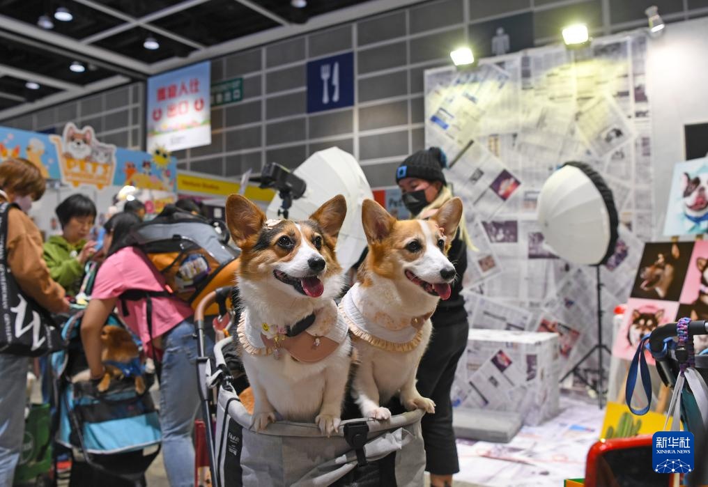 这是2月6日在香港会议展览中心拍摄的柯基犬。