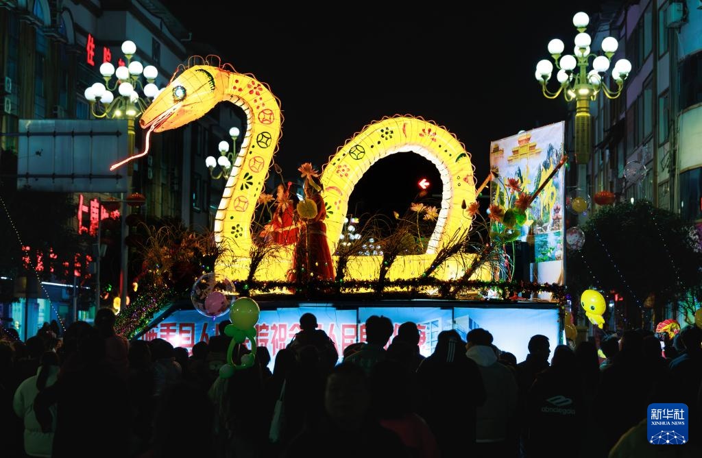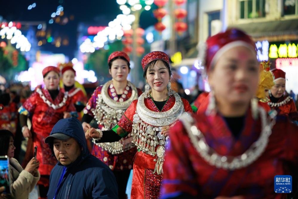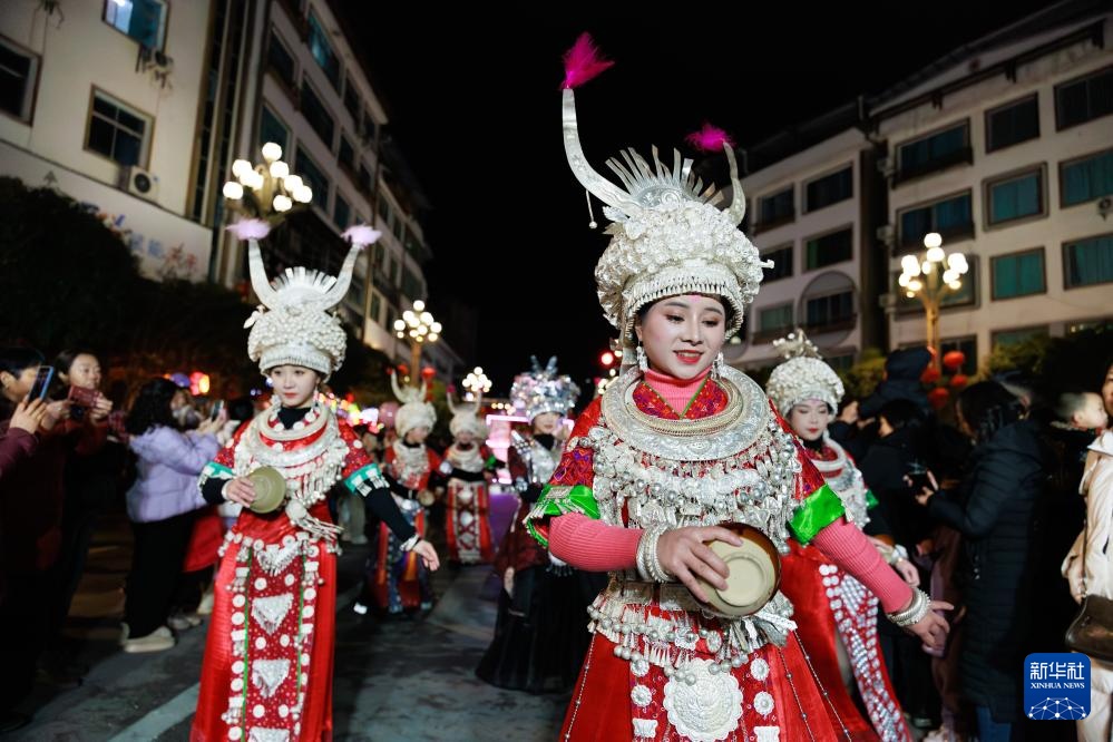 2月6日,参加活动的当地少数民族群众在施秉县城内巡游。