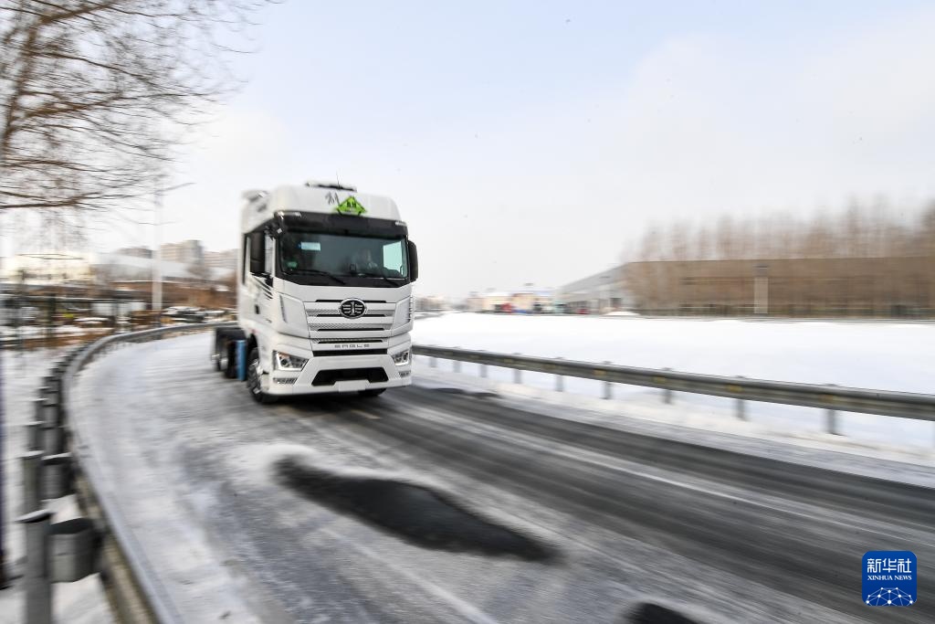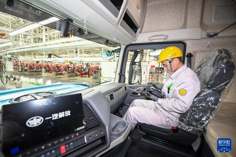 2月7日,在位于吉林省长春市的一汽解放J7整车智能工厂,工人驾驶车辆进行测试。