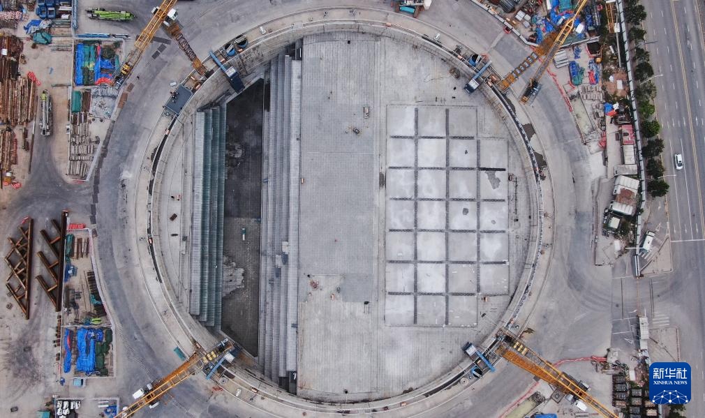 这是狮子洋通道主桥东锚碇施工现场(2月6日摄,无人机照片)。