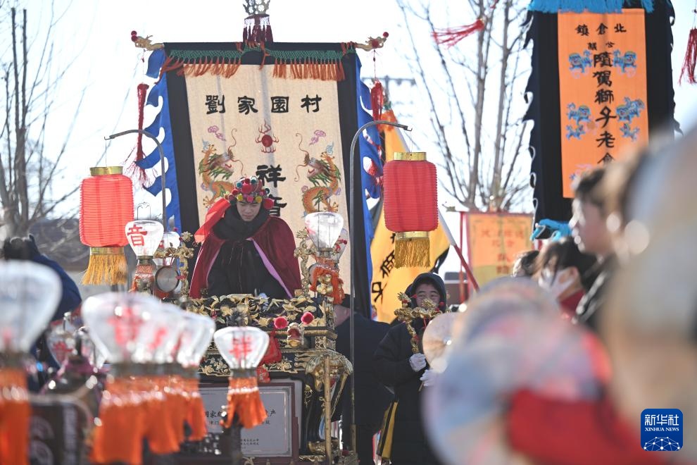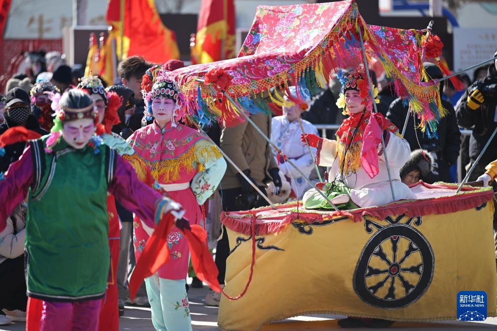 2月7日在天津市北辰区双口镇中河头村拍摄的虫八蜡庙小车会展演。