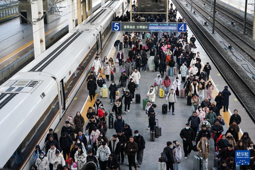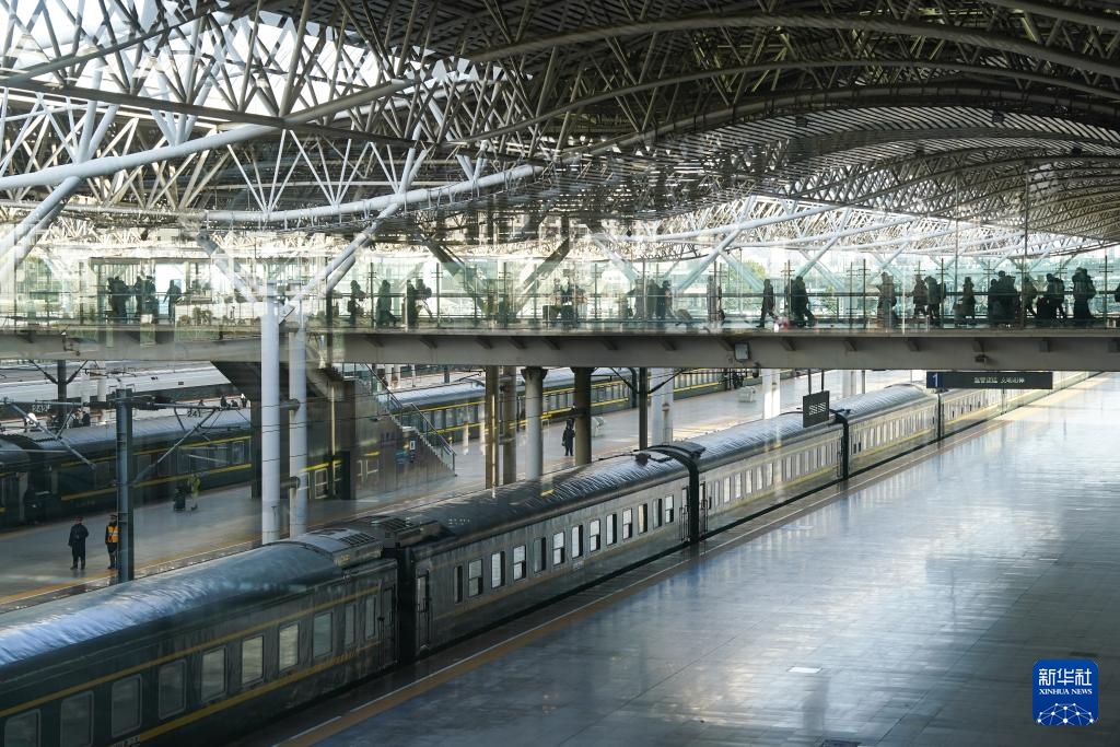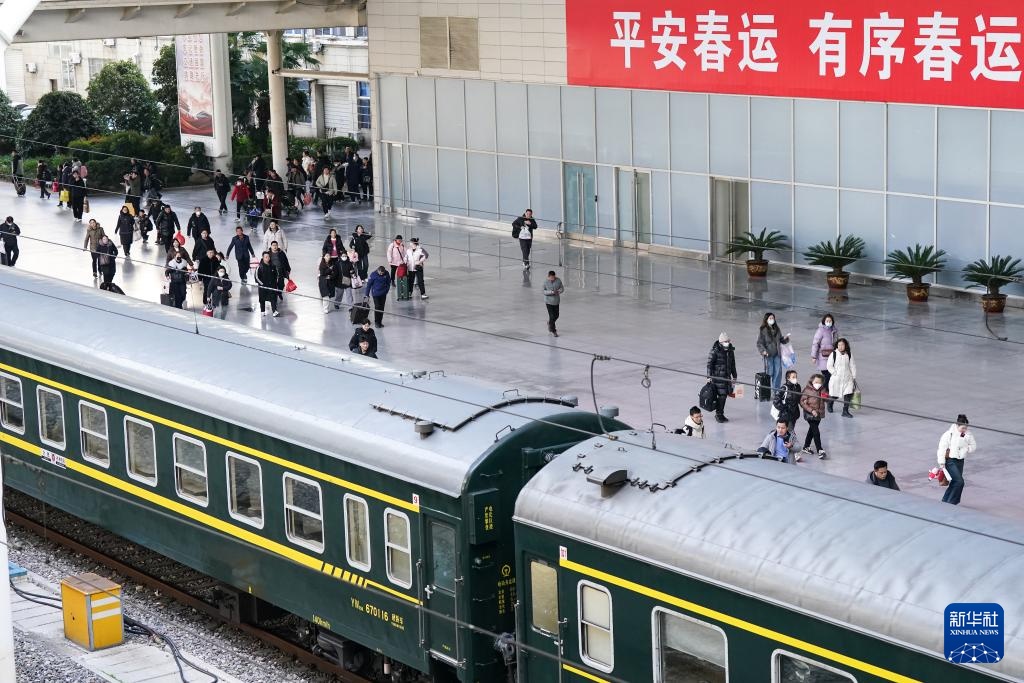 2月7日,旅客在合肥火车站上下列车。