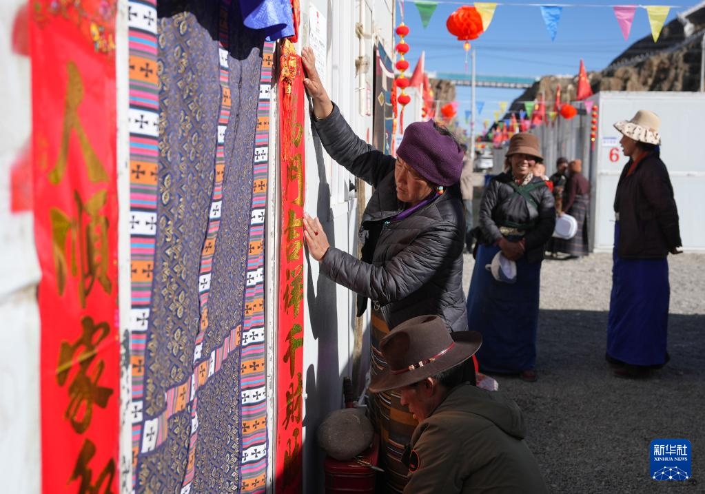 1月26日,拉孜县吉如村安置点群众在挂吉祥结。