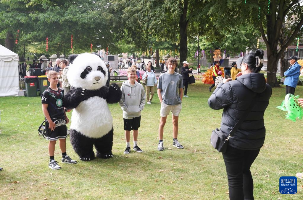 2月7日,游客在新西兰克赖斯特彻奇新春嘉年华活动上与熊猫人偶合影。