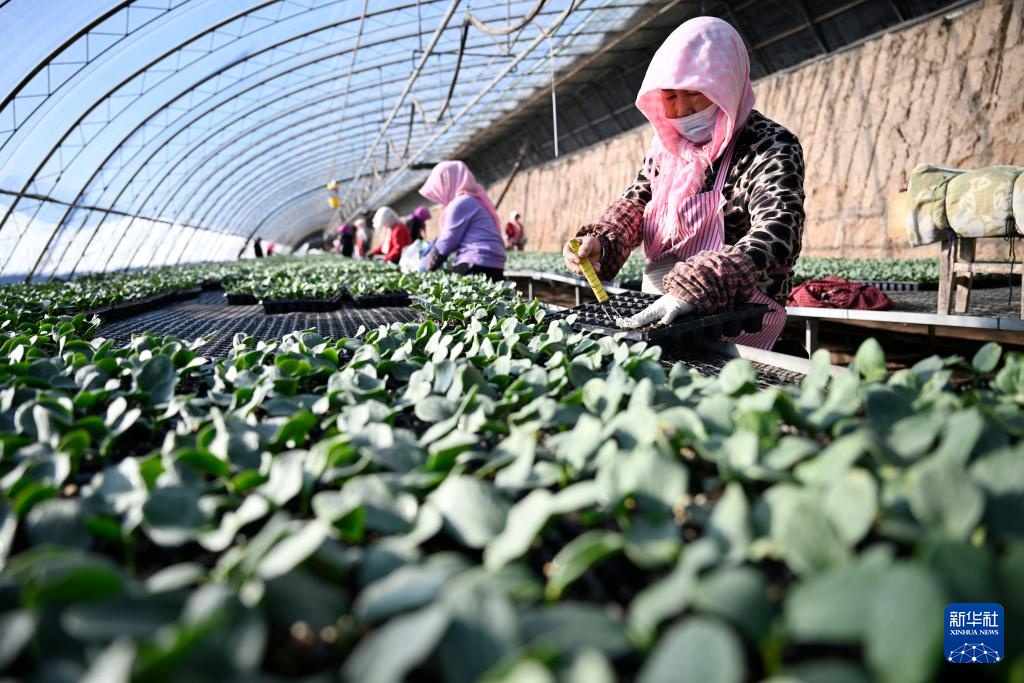 新春伊始,宁夏银川市贺兰县育苗基地迎来节后育苗生产季,工作人员加紧培育各类瓜果蔬菜幼苗,为即将到来的春耕、春播做足准备。