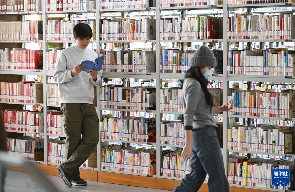 2月9日,读者在朝阳区图书馆劲松馆度过周末。