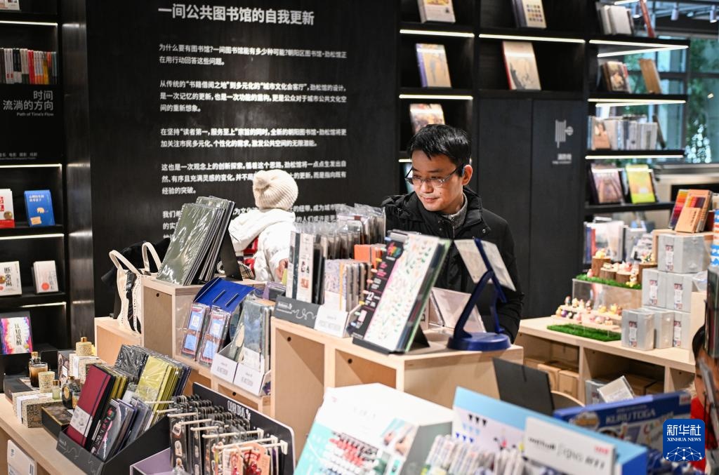 2月9日,顾客在朝阳区图书馆劲松馆选购文创产品。