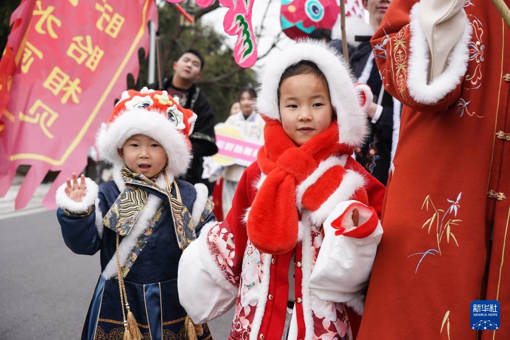 2月11日,小朋友参加巡游。