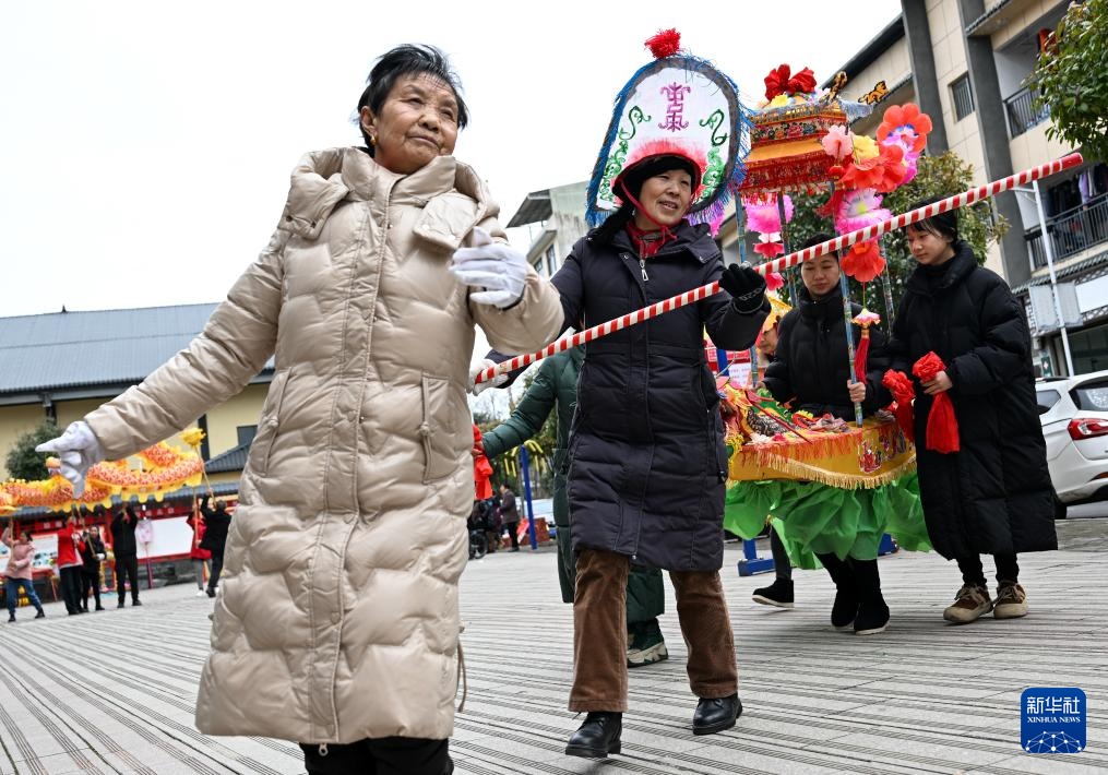 正月里,在湖北省恩施州利川市柏杨坝镇,一支来自“利川灯歌传习所”的灯歌队踏着铿锵的锣鼓点亮相街头。表演者们手持彩龙船等道具,时而围成圆圈模拟划桨竞渡,时而排成队列演绎田间耕作。欢快的锣鼓声与歌声交织,围观群众也不时应和着熟悉的旋律。