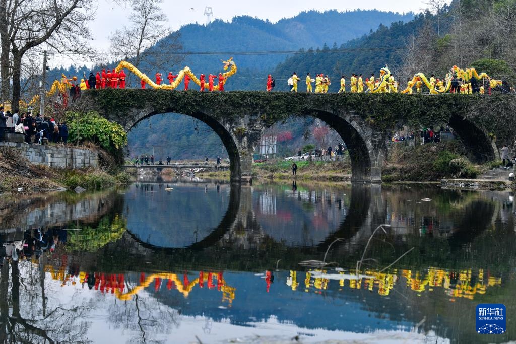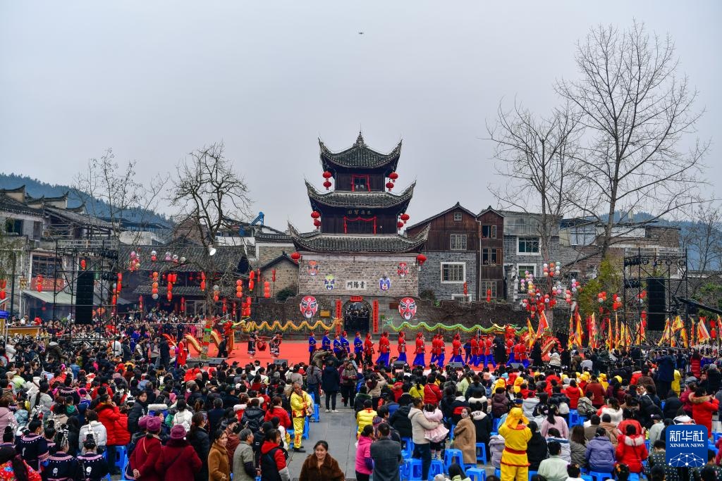 这是2月11日拍摄的贵州锦屏隆里“村晚遇元宵·来隆里玩花脸龙”活动现场。