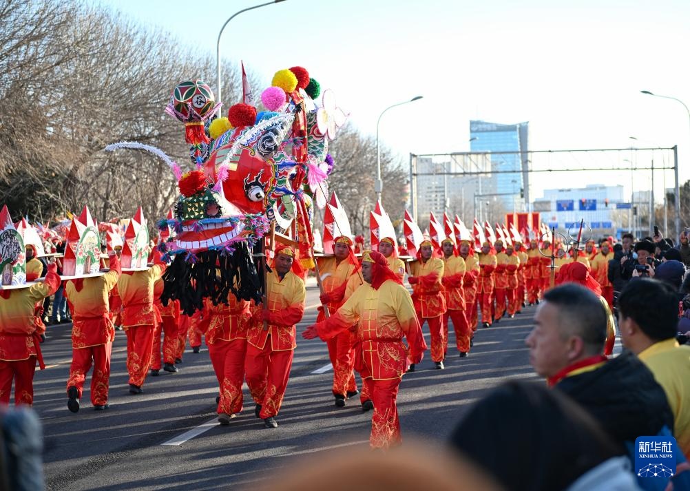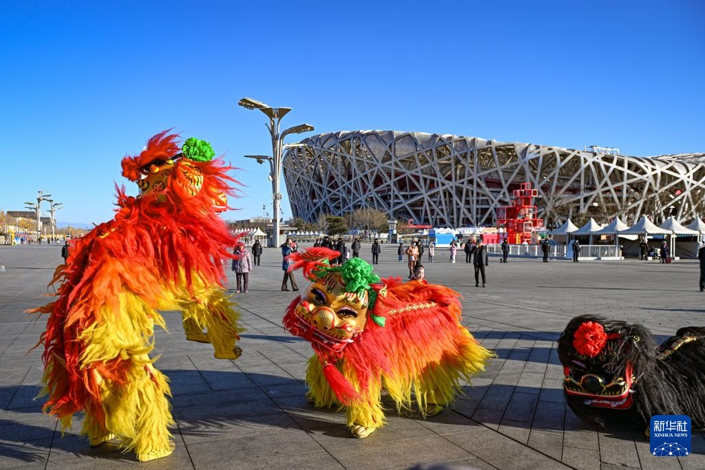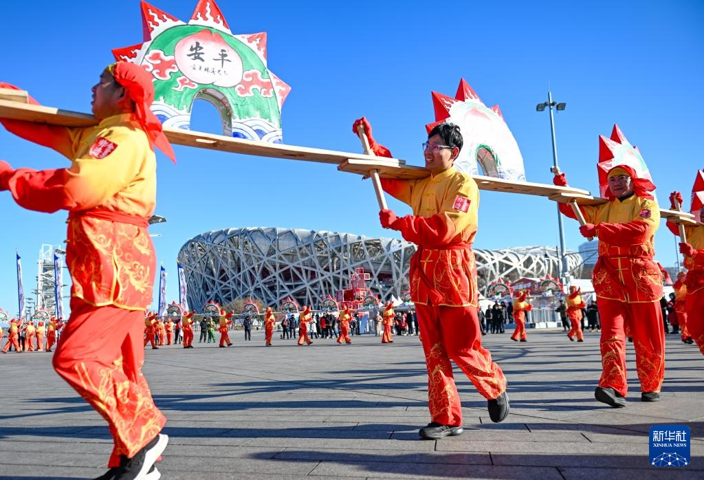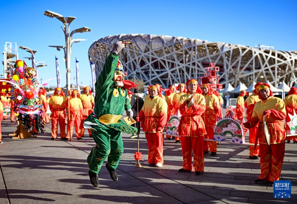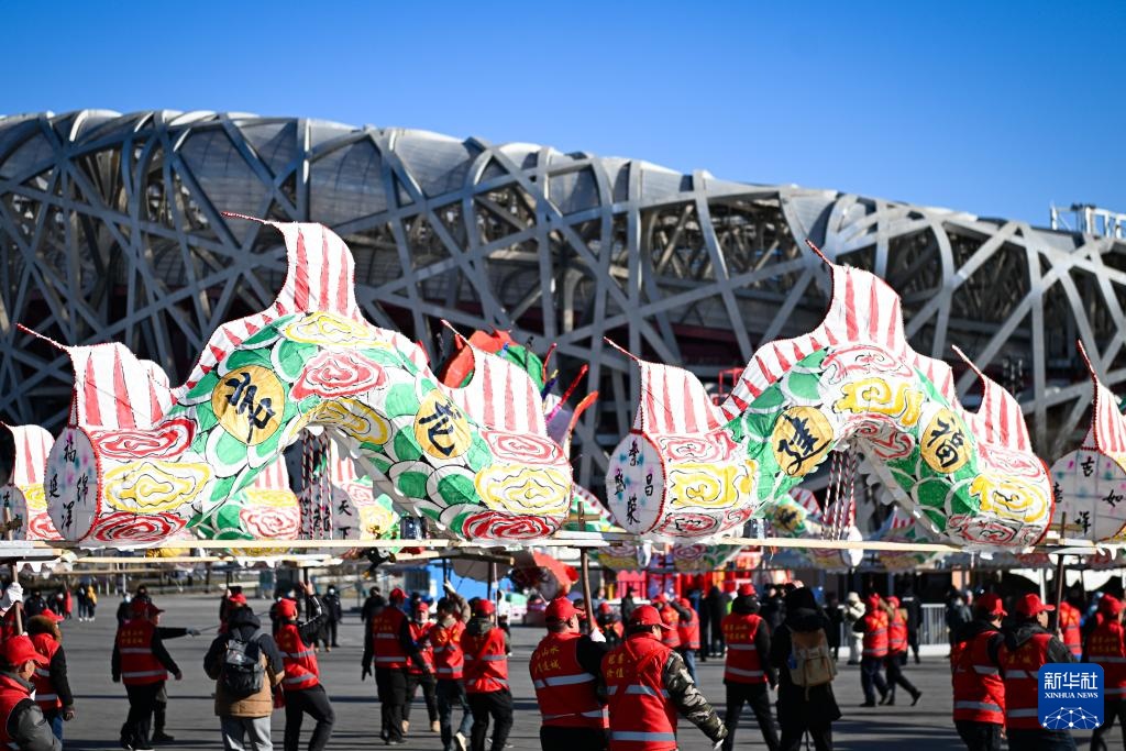 当日是元宵节,在北京奥林匹克公园内的北顶娘娘庙至国家体育场“鸟巢”南广场一线,北京的狮舞(白纸坊太狮)、浙江的龙舞(浦江板凳龙)、福建的元宵节(闽西客家元宵节庆)中的连城姑田游大龙和陕西的老庙老鼓等非物质文化遗产代表性项目进行了展演巡游。传统非遗文化与“鸟巢”等现代奥运景观相融合,烘托出别样的节庆氛围。