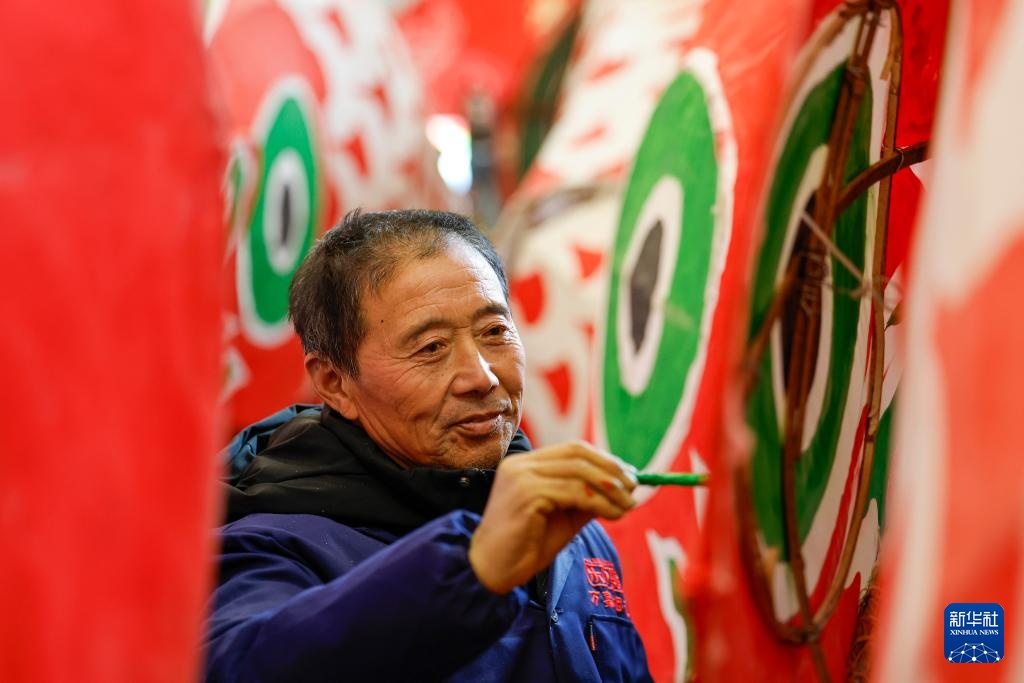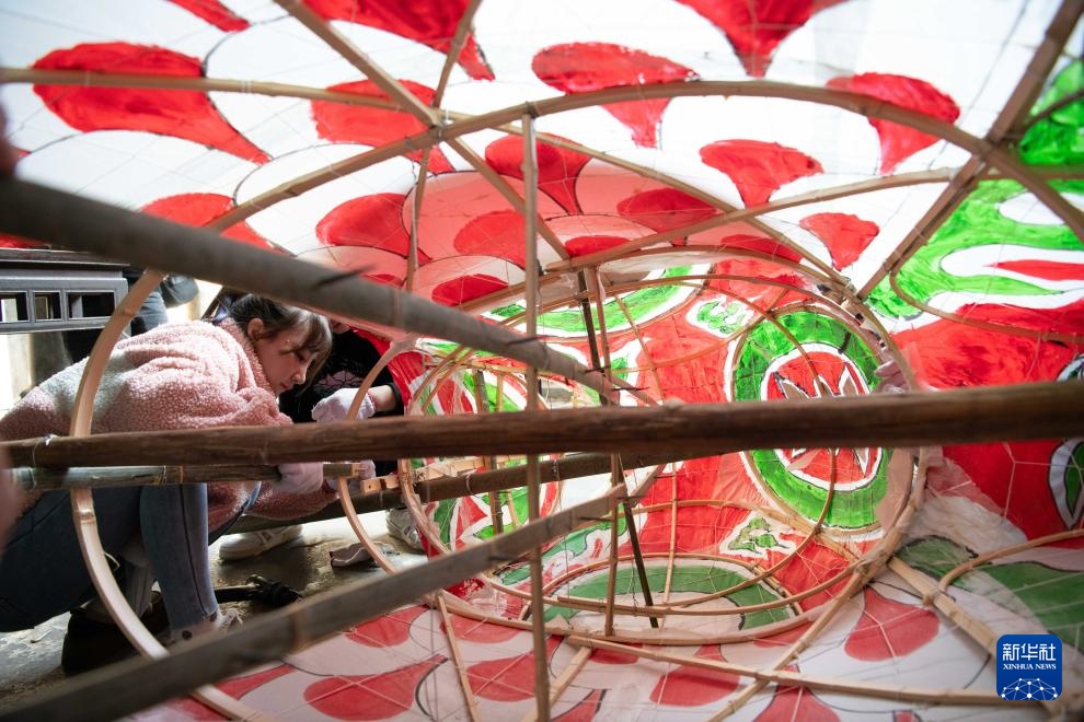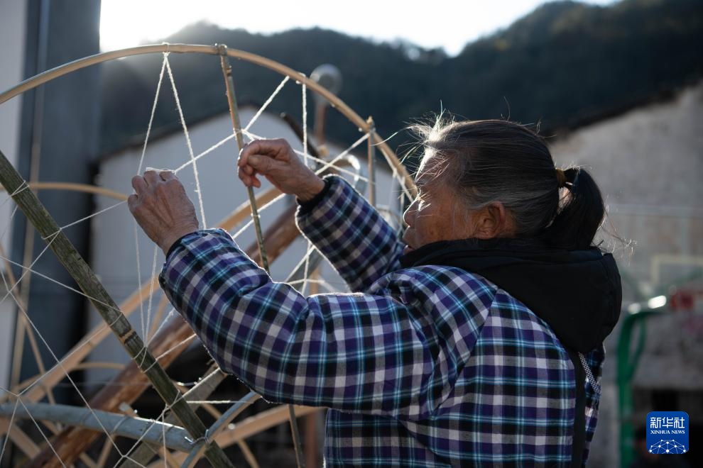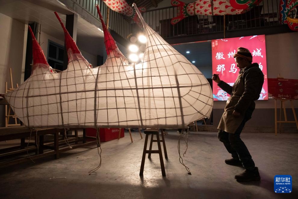 2月10日,在安徽省黄山市歙县溪头镇汪满田村,村民在制作鱼灯。