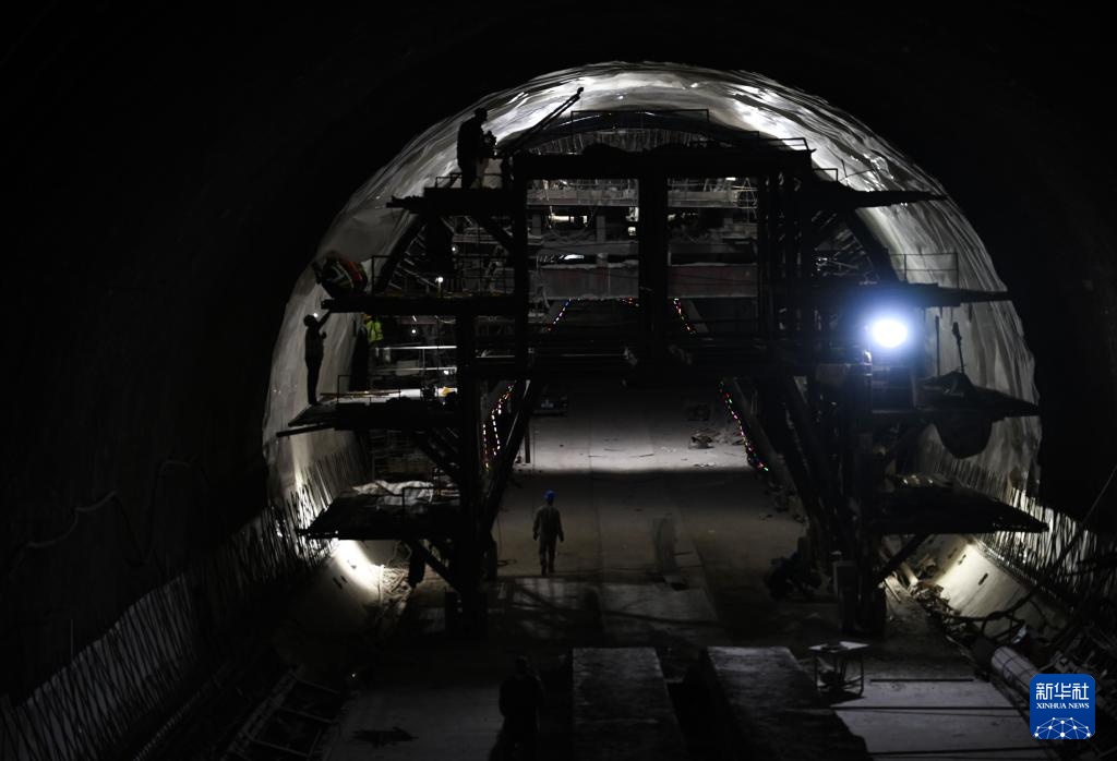 2月13日,中国铁建大桥局工人在西延高铁铜川隧道施工。