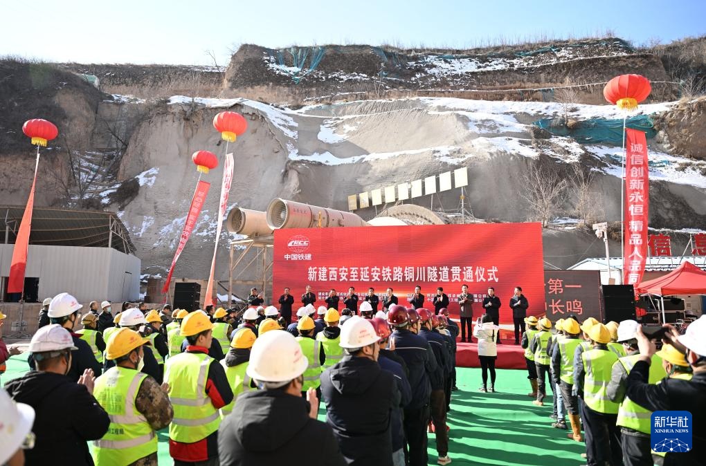这是2月13日拍摄的西延高铁铜川隧道贯通仪式。